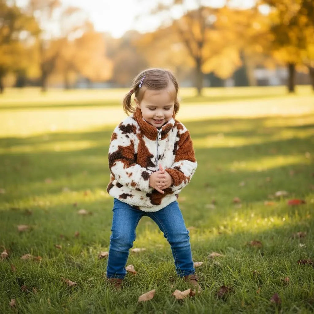 •Cow print in the jacket is perfect to make the little one go stylish and stand out
